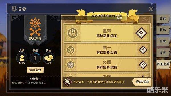 公会是一个小团体,而战争模式便是检验团体实力的最好方式。公会人数的增多,等级的提高,以及成员贡献度的提高都是提升工会实力的最佳方式。当然,火车跑的快,全靠车头带,一个好的公会一定要有一名富有责任心的会长。