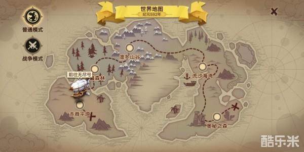 1、普通模式:设有赤脊平原、薄暮森林、凛冬山谷等地点,玩家只需要根据每个地点所给的指示完成相应任务即可,这也是比较简单的挑战方式。