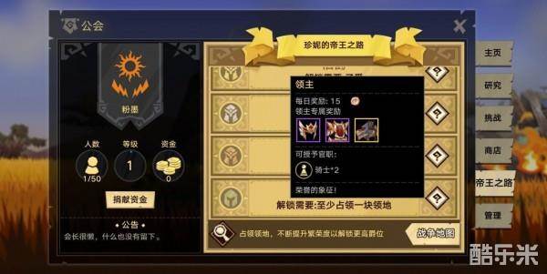 最后,公会系统中领地战的模式虽然有趣,却也考量了不少其他因素。建议个人能力和时间不是很确定的玩家选择加入别人的公会,做好日常贡献任务,跟着靠谱的会长混自然也不会差。最重要的还是个人战斗力的提升,毕竟有竞争力的工会不养庸才。今天就分享这么多,加油吧,各位勇士!