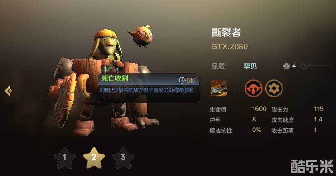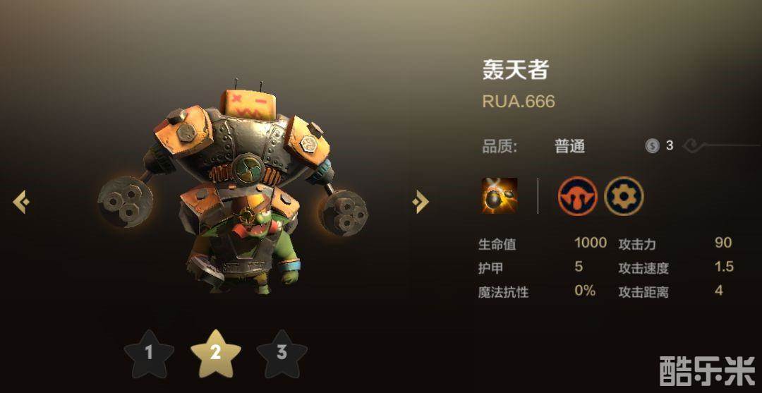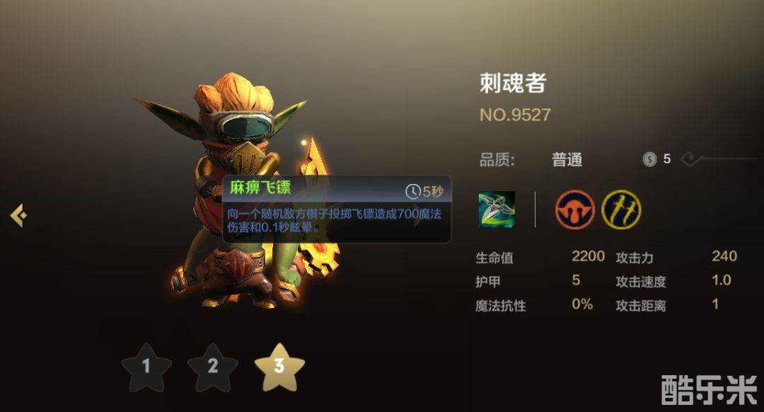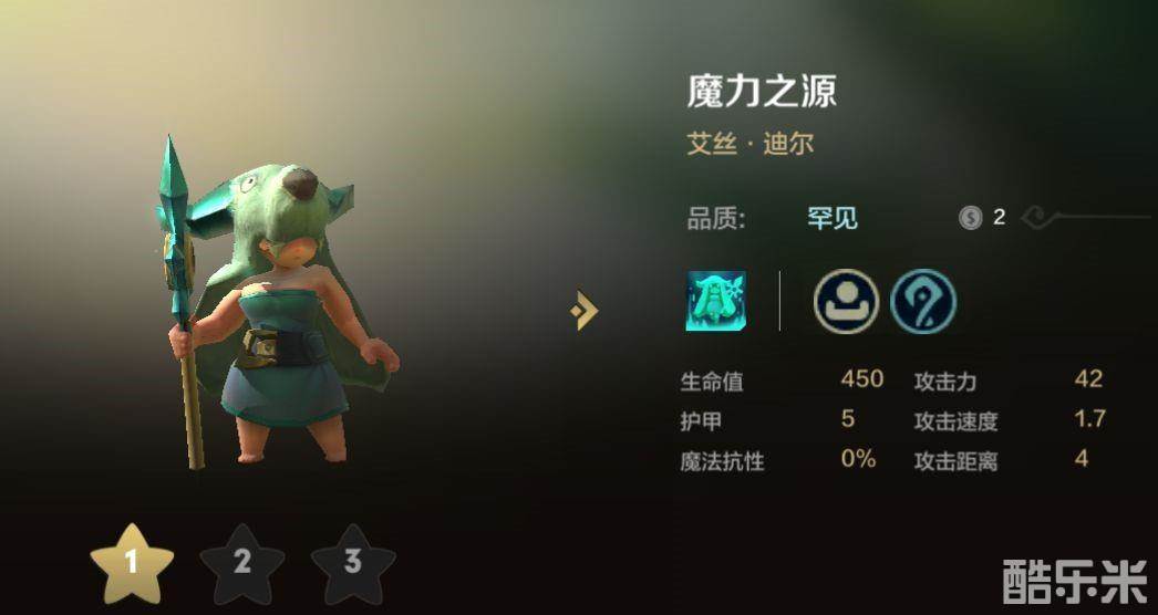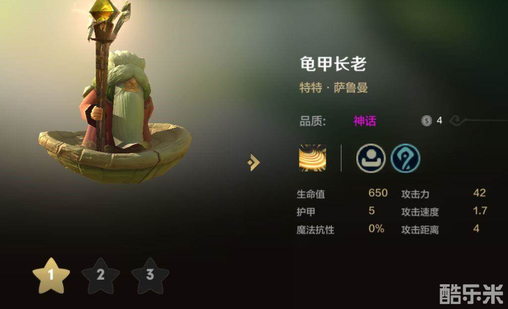 3.23版本以前拥有着初始10护甲和高额大招伤害,改版后没有成长性护甲地精中的弟弟(挂件)。1$棋子比较便宜,(能三星就三星)