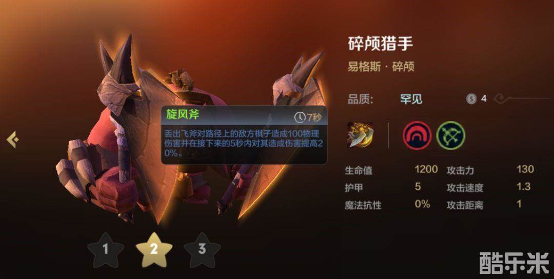 地精的主要核心,大招拥有爆发物理伤害可以清场。大招属于物理伤害所以不能享受法穿效果,但是可以搭配上减甲(炼金的大招酸雾)亡灵阵容。棋子稀有的概率不太容易3⭐(能三星尽量三星)