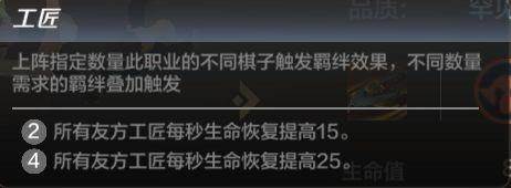 职业技能,加强回复效果,2个+15、4个+40,提高关键棋子战场能力。