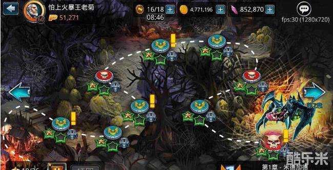 “冒险模式”共有六章,每章18个关卡,大家在闯关过程中要注意那些标记有红色的关卡,这些关卡都是有BOSS出没的,打起来难度也会大很多。