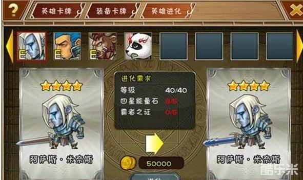 【进化需求】1.英雄(卡牌)达到一定级别 2.金币 3.相应道具
