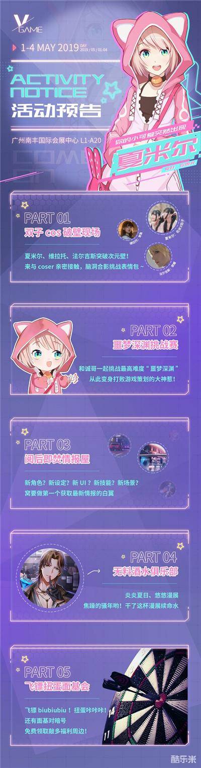 炎炎夏日,悠悠漫展,焦躁的少年哟,来喝一杯漫展续命水吧!没错,我们把崔妮塔俱乐部也搬到了漫展现场!突破次元壁的不仅仅是酒吧,跟俱乐部一同穿越过来的还有维拉托(coser @宵鱼弟弟 )、法尔吉斯(coser@-荣耀宝宝-)和最受VGAME玩家喜爱的夏米尔,在穿越过程中发生了奇妙的变化——表里世界形态的我一起粗线(双胞胎coser@佐米X佑子)!