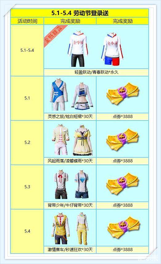 另外,劳动节期间,每日登录游戏还有热门商城套装+3888点券可以领取哦!记住,是每天都可以领取哦!一天换一件,再也不用担心没有衣服换啦~