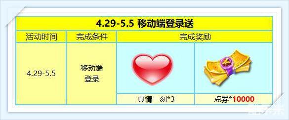 4.29-5.5,登录助手APP-游戏模块,真情一刻+10000点券轻松带走!五一期间心动双倍活动超级需要的道具哦~