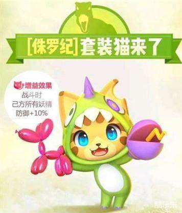 如上图所示,新增套装基因名叫“侏罗纪”,其实就是给猫咪穿上了一件恐龙外套。基因名字不重要,重要的是它的buff,战斗时能为己方所有妖灵增加10%的防御效果。带着这只猫,就好比开了一个官方挂,防御力整体得到提升,能改变许多原本既定的事实,这要是搭配火龟娇娜颜如玉,可不得比把对手磨疯。基因配方,需要用到四种,煤堆探索+圆点点+一本正经+小狮尾才有几率合成,难度不比招财猫逊色多少。