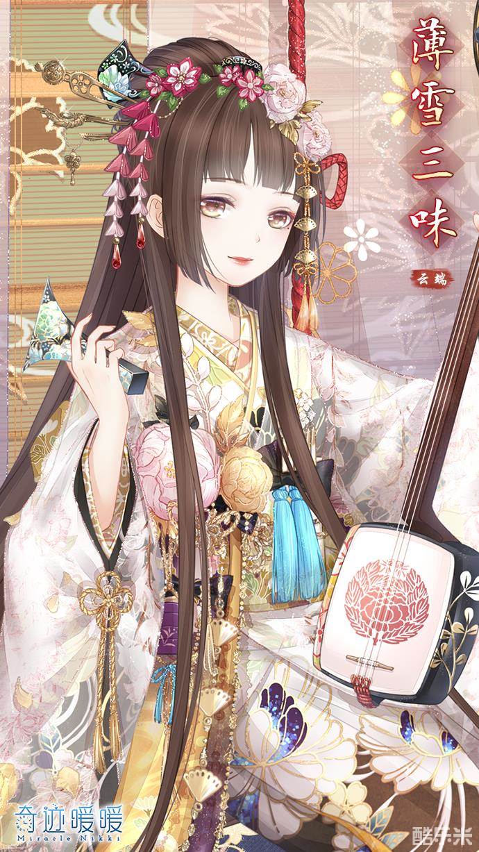 披着月色的美人静坐于和室之中,缓缓拨弄着古雅的乐器。