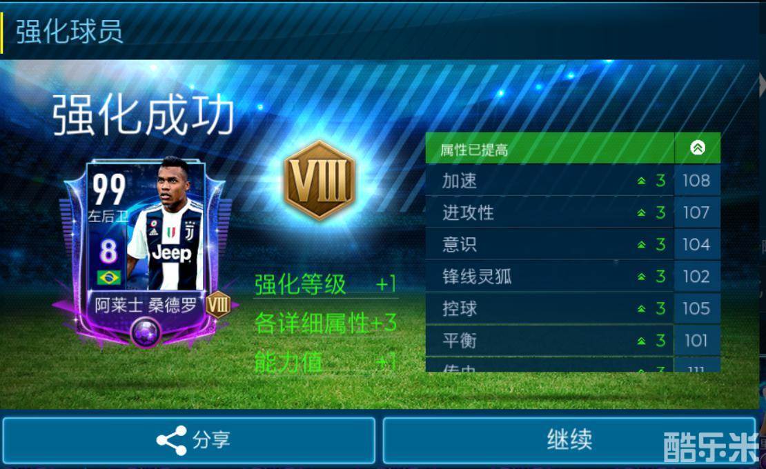 2. 对球员卡卡面的影响:当球员强化后,原球员卡右下角会出现一个罗马数字图标,代表该球员目前的强化等级。