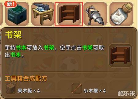与取出编书台的方法一样,先将书架放到道具栏中,再摆放到地上即可。