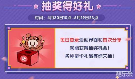 4月30日上午10点开始,每日登陆活动界面和首次分享可以获得抽奖机会,各种豪礼等你来抽!