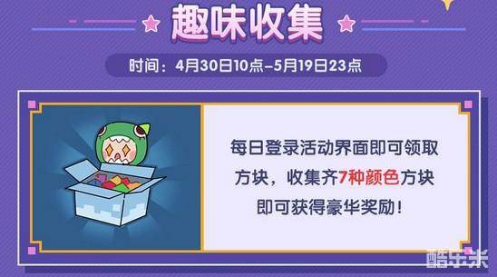 每日登陆活动界面可领取方块,收集7种颜色方块即可获得豪华奖励。