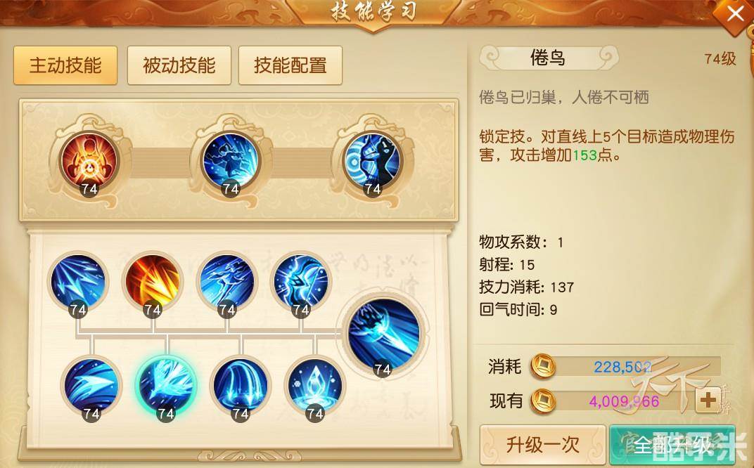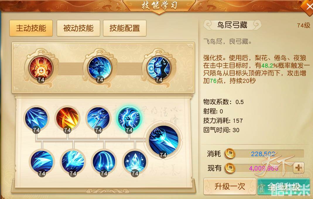 鸟尽弓藏:强化技能,梨花,倦鸟,野狼有几率触发火鸟一只。
