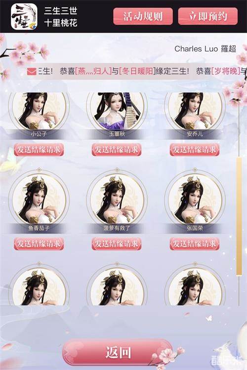 《三生三世十里桃花》手游IOS平台预约、“角色预创建”功能现已正式上线,“缘定三生”情缘活动火爆进行中!抓住最后的机会,仙友们赶紧预约游戏,预创建角色并寻找自己的心仪之人“结缘”,赢取最丰厚的结婚大礼包吧。