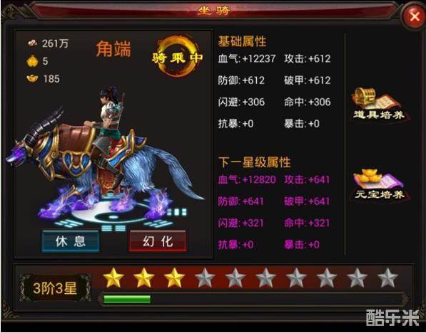 主线任务达到十级开启“坐骑”,升级坐骑可大幅度增加各项属性,升级坐骑主要用坐骑经验丹,元宝可以,以前也可以用铜钱,小编用铜钱升级一次花了一千三百万,心痛死了,以前培养坐骑官方设定是有多少下多少,不过还好现在改过来了。