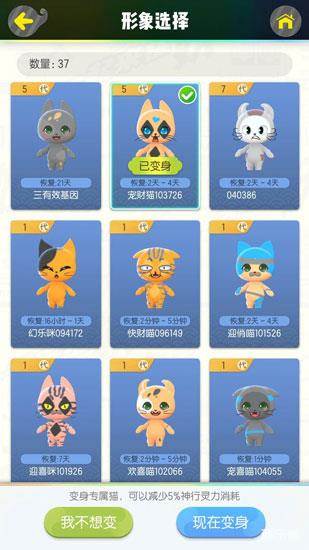 3、进去后设置自己喜欢的猫形象,以后神行就可以变成这只猫的样子了,并且可以减少5%的灵力消耗!
