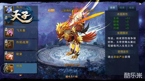 鸡年限定坐骑“烛夜”,传说烛夜因性格争强好胜,玉帝赏赐头带红花破格列入生肖的行列,在战斗中烛夜会召唤出皇萌鸡之王,对主角增加50%的免伤效果,对范围内目标随机造成伤害,持续10秒,并造成目标1~5秒的眩晕,10秒减攻效果。是不是很威武霸气啊!