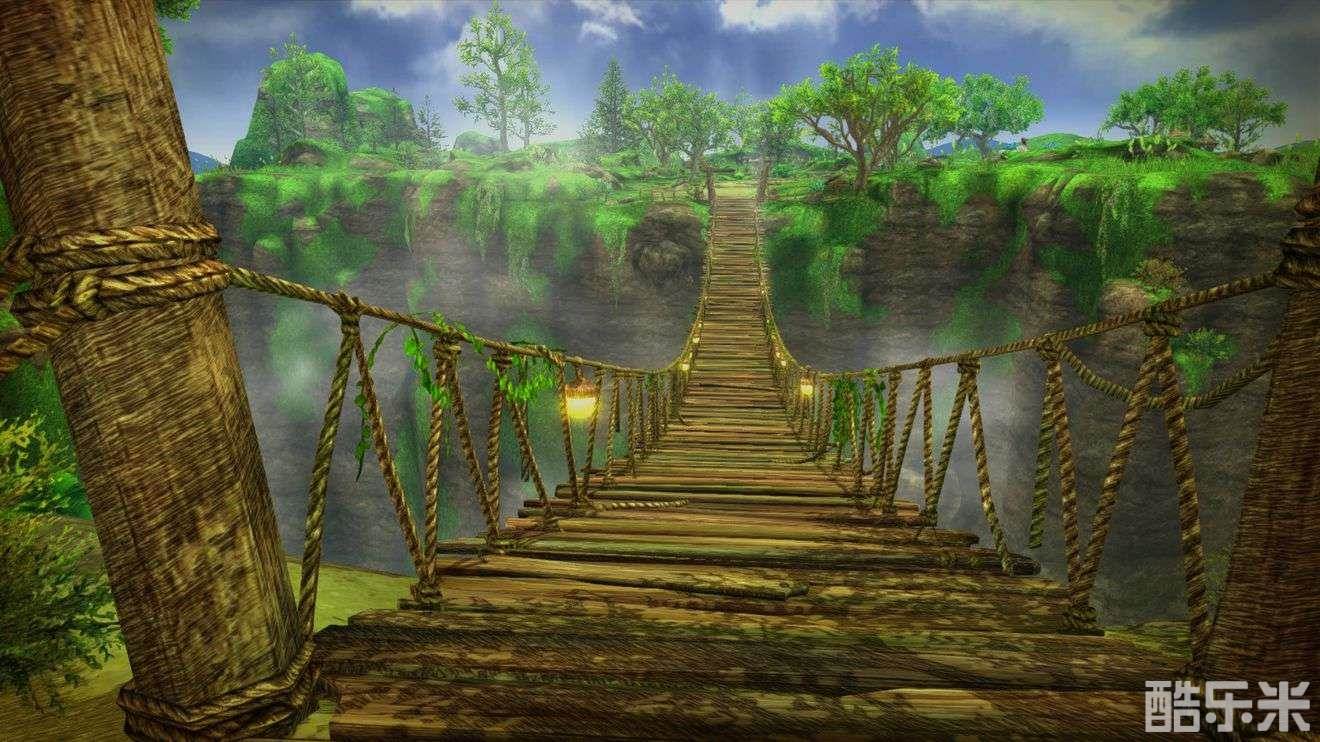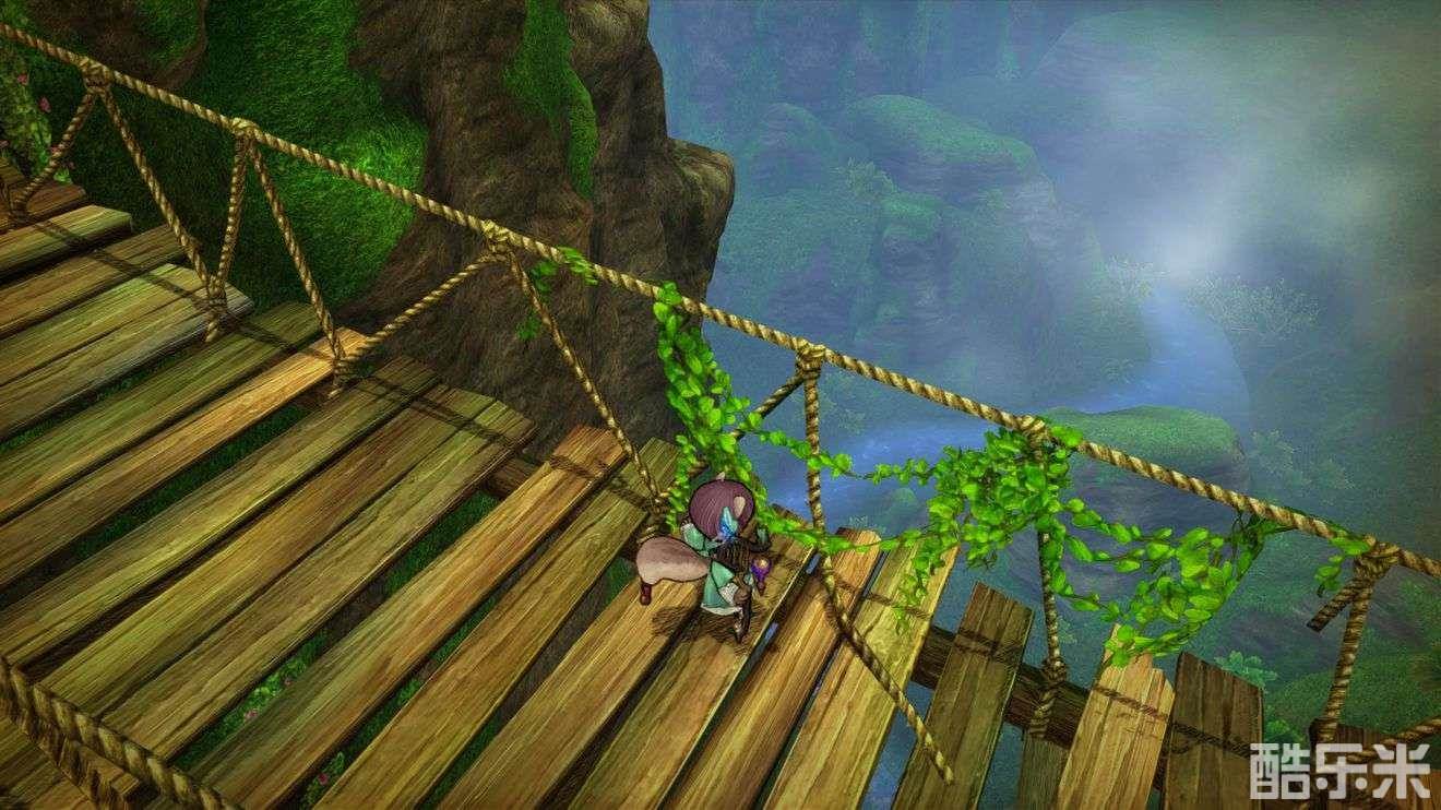 走着走着我们来到了悬崖尽头,在我们眼前出现了一架沟通两岸的吊桥。