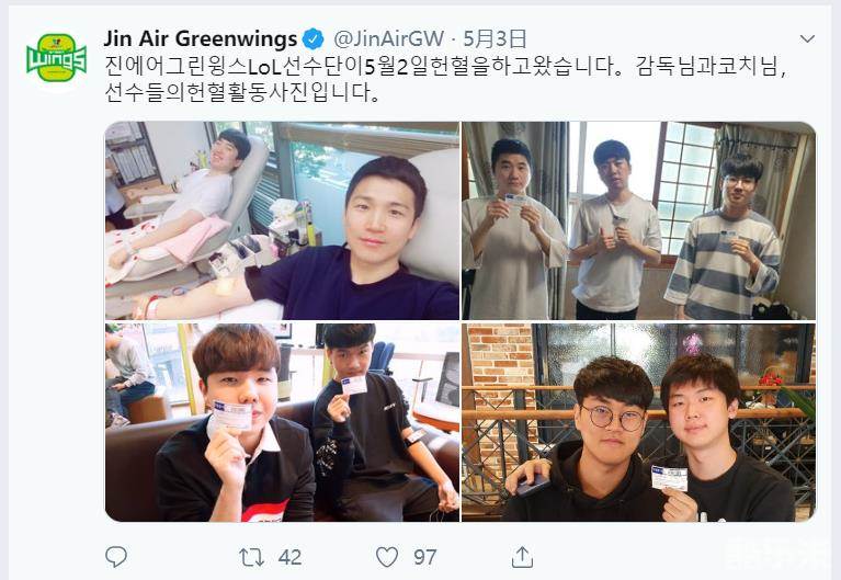 原来,在近日,JAG战队去参加了无偿献血,从推特的消息来看,对于这么有爱心的行为,JAG战队集体出动,甚至还包括教练在内!