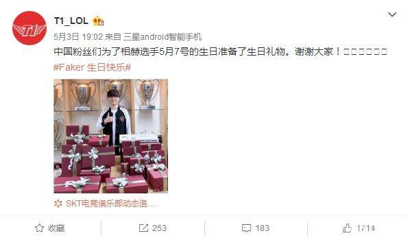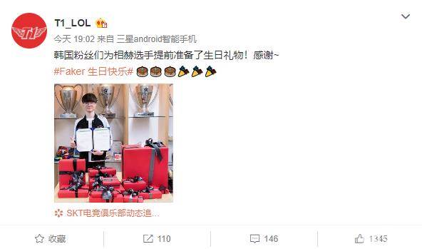 为了祝贺faker的生日,中韩粉丝也纷纷为faker送上礼物。