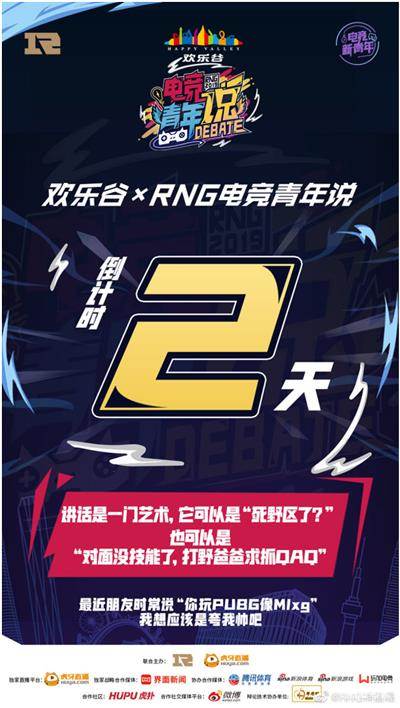RNG【电竞青年说】第一场比赛是明天,也就是5月4号的晚上七点正式开幕,不知道此前在海报文案中出现过的锅老师是否会出席。不过从RNG这次活动的合办方来看,不管是华侨城的欢乐谷集团还是现在的直播一哥虎牙,都是个顶个的行业大佬,应该会有大家喜欢的队员参与出席。