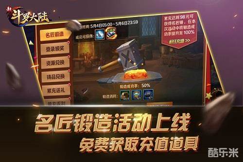 本次《新斗罗大陆》“名匠锻造”活动期间累计充值达到98元,即可暂时领悟传说中的锤法,将锻造成功率提升至100%(仅限本次活动期间有效)。这同时意味着变异的概率也将在原概率基础上进行翻倍,是不是超级犀利且划算呢?