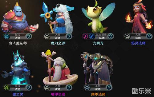 法师推荐:鬼甲长老(光法)、凋零法师(巫妖)、雷之灵(电棍)、焰灵法师(火女)、光麟龙(帕克)