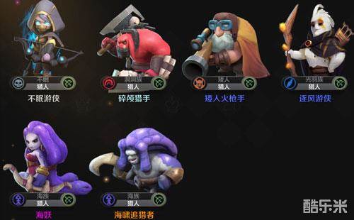 猎人推荐:碎颅猎手(兽王)、逐风游侠(风行)、灵刃骑士,后期可换成海妖、海啸追猎者。