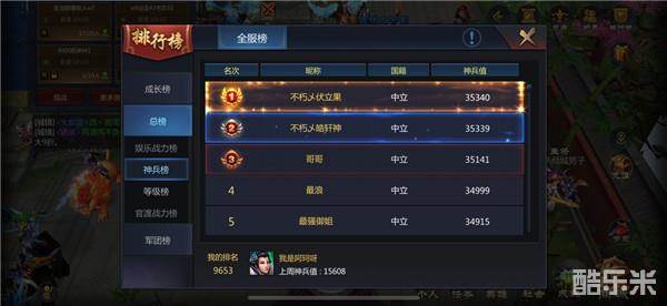 此次更新排行榜分别有“成长”“战力”和“神兵”三大榜,其中“神兵”榜乃是当之无愧梦三第一榜,凡是有资格出现在“神兵榜”上的仙术师,都是对抗炎魔再次入侵的中流砥柱!