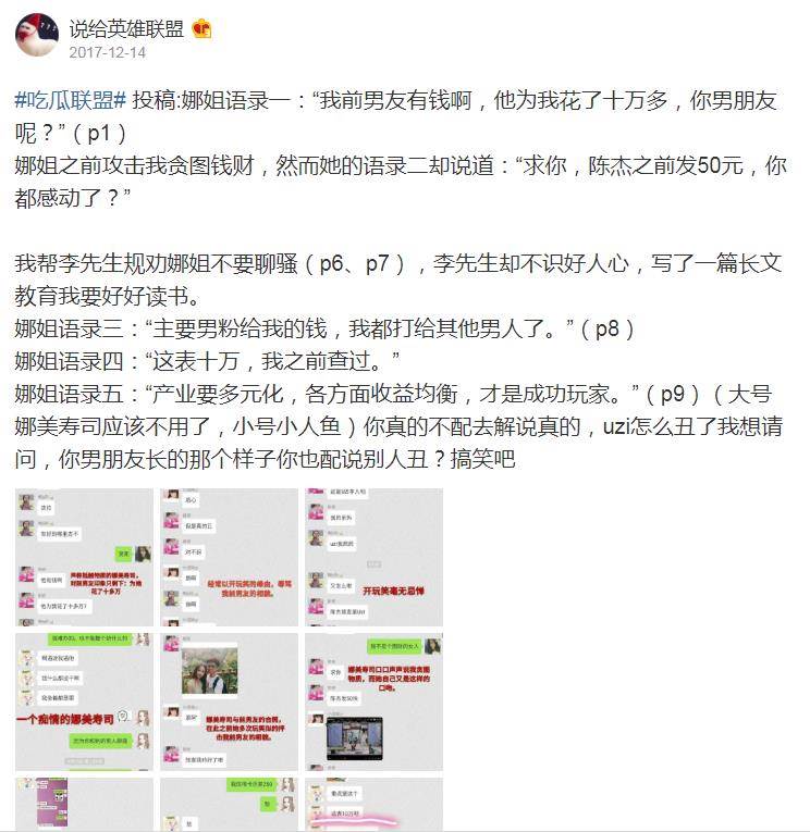 第三条,鼓鼓一名不知识现任还是前任的男友,为她写了一篇小作文,就为了将她洗白,最终什么都没洗干净。通篇表达的意思就是她这样做是不太好,但是因为某原因导致的她变成这样,所以不怪她。