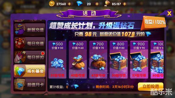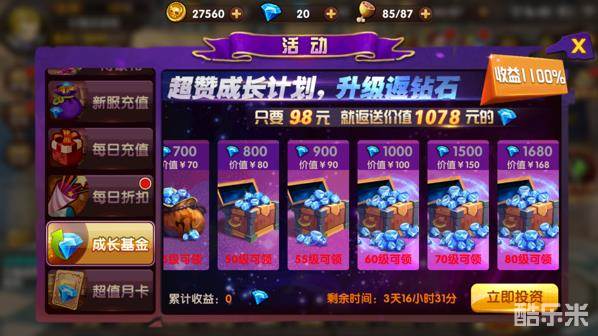 开服活动的成长基金,强烈建议玩家购买,性价比真的很高。