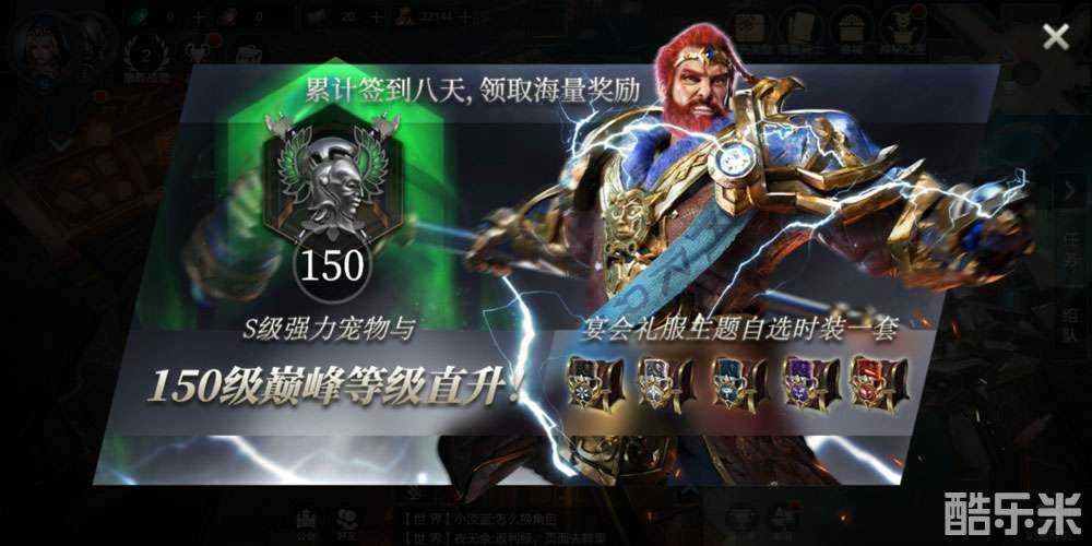 开服后也有活动,累计签到8天,巅峰等级直升150级,距离能拿到最后一位英雄-伊莎杜拉会更近一步了!