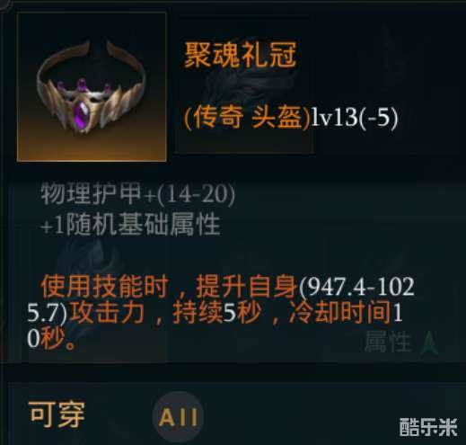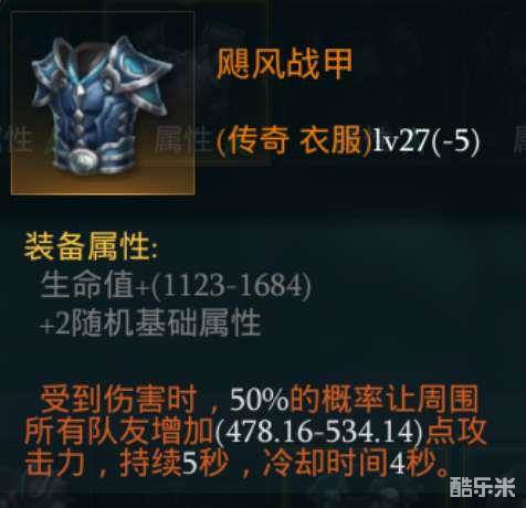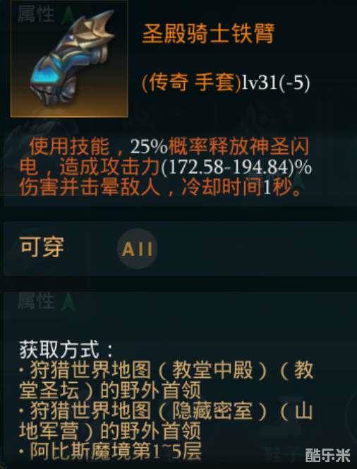 推荐理由:虽然装备等级低,但是触发条件要求也很低,简单的使用技能攻击就可以触发,持续5秒的超高攻击力提升在前期却是没有哪件传奇装备可以匹敌的,配合【黑煞套装】的暴击率提升是不是瞬间爆炸呢!