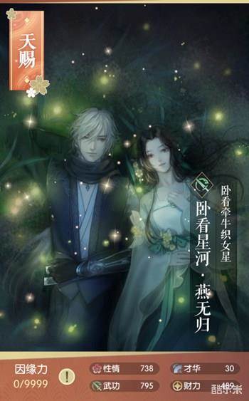 卧看星河是遇见逆水寒中角色燕无归的一张卡牌,卧看星河·燕无归卡牌属性如何,卧看星河卡牌的性情、才华、武功、财力如何,一起来看看吧。
