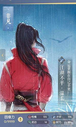 江湖不平是遇见逆水寒中角色温柔的一张卡牌,江湖不平·温柔卡牌属性如何,江湖不平卡牌的性情、才华、武功、财力如何,一起来看看吧。