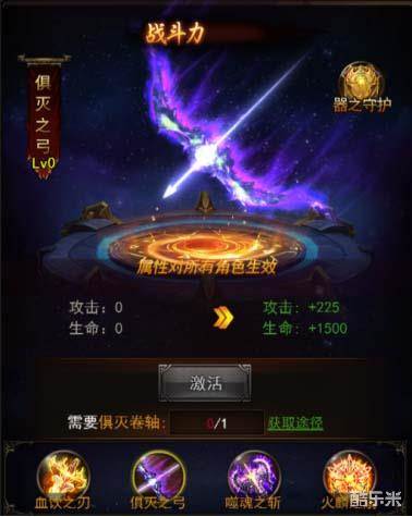 当然了,这四样神兵绝不只是好看而已,它们给玩家带来的战斗收益才是最大的关键之处,毕竟我们都是只看实力不看外表的传奇勇士!四样神兵都可以为玩家带来大量属性加成,并且拥有重复神兵还可以进行二次升级,让属性提升节节攀升,这里需要强调,四样神兵都可以为所有角色进行增强!相信炫酷的神兵器灵已经让各位玩家跃跃欲试,那么到底该如何获得珍贵的器灵呢?答案就在远古战士们的舞台“通天战场”里。在通天战场里玩家可以爆出远古四大神兵的卷轴,而通过卷轴即可解锁神兵,获得其寄宿的能力了!而当手中的四大神兵都解锁到第五级时,就会为玩家开启特殊属性“器之守护”,代表着玩家终于成为远古神兵所承认的勇士,将获得远古神器的庇佑,永久提高角色属性,之后伴随器灵等级提高,器之守护的等级也会不断地提高!