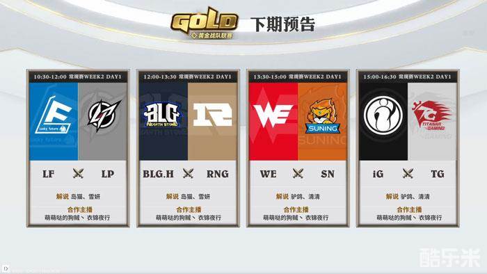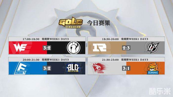 由网易和暴雪举办的《炉石传说》黄金战队联赛春季赛于 5月3日-6月9日在上海暴雪电竞馆燃起战火。在第三日的比赛中WE以 3比2 的比分战胜iG夺得三连胜,稳居积分榜首; LP同样以 3比2 的比分击败RNG;LF力挽狂澜以3比2的比分反三穿BLG.H;TG则以 3比1战胜SN,获得了首胜。