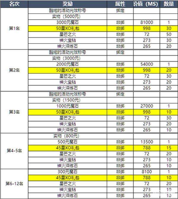 活动结束时,最终前12名玩家将获得第一届星宫传奇 12位星宫霸主头衔。这12名霸主也将在星宫传奇第三阶段接受全服玩家的挑战。当然,这12名玩家也将获得星宫传奇的丰厚馈赠,他们还将载入魔域名人堂,让所有人都能知道他们曾取得的巨大功绩。