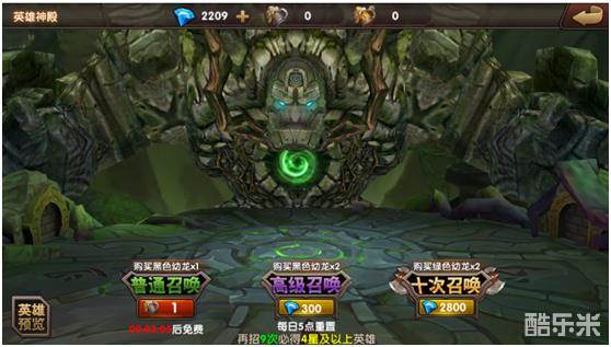 在通关普通战役1-1后,开启神殿功能。玩家可以花费钻石和麦酒,通过神殿招募到各种英雄,甚至是强力高星英雄。