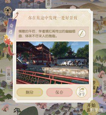 3、游历结束后,游戏会提示你获得的奇景,点击【保存】即可保存奇景图片了。