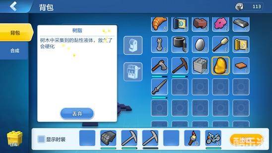 通过砍树会掉落树脂,用两个在炼金台上制作而成,炼金台可以在工具台合成。