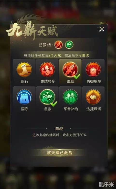 本次九鼎冠军联赛S3赛季的最大变化无疑是新增九鼎天赋系统。参与九鼎联赛的联盟每场进入九鼎后可以选择2个天赋,疾行、集结号令、血战、防御壁垒、固守、急救军备、补给、迅捷斥候九种属性各异的天赋可以说成为了决定比赛走向的胜负手。是猛攻为上,还是速战速决,亦或是打持久战,全凭玩家的临场决策,各大联盟的谋略与才智将在此刻展现得淋漓尽致!