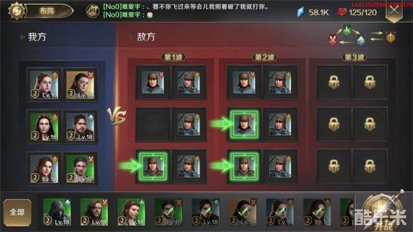 游戏中的战斗在指挥官和兵种之间的设计采用了经典的克制关系,剑、枪、骑三个兵种间存在逐个对立克制关系,而弓箭手则是与前三者都存在相互克制关系。这一点让游戏的战斗抉择及部队搭配上就存在有很大的选择空间。