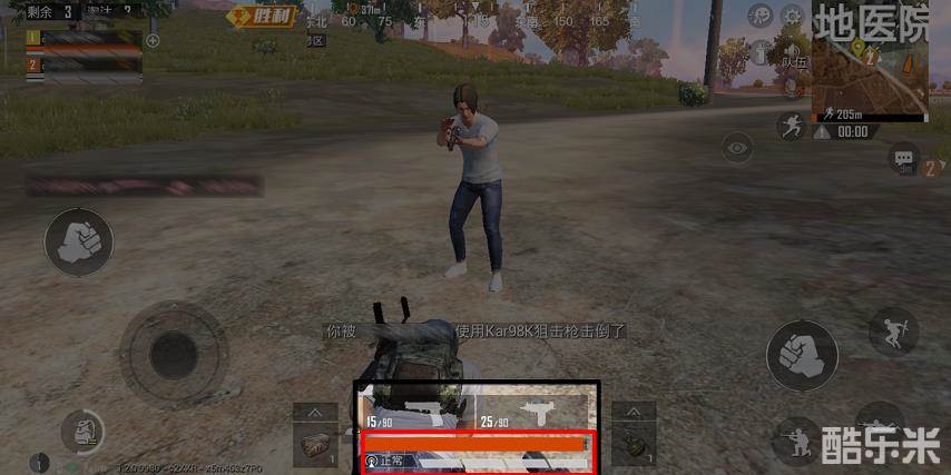 对信号值处于50%-75%的对手,一枪大概能打掉75%的健康值,这个伤害已经很可观了,顺带一提,若对手的信号值处于50%-75%的时候,并且没有装备护甲,使用kar98k攻击其身体就可以直接淘汰对手。 健康值100%,信号值25%-50%