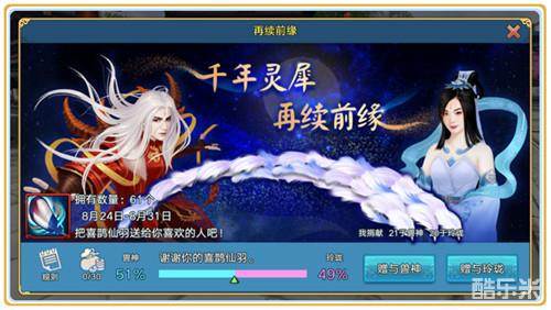 七夕版本上线后,玩家通过击杀野怪还将随机获得“喜鹊仙羽”道具,以此为有情之人搭起连接彼此的真爱之桥,成就一双眷侣。赠人玫瑰,手有余香,在帮助有情人献上仙羽后,玩家还将随机领取炼器符、灌注符、完璧符、宝石包等精彩奖励,好运满满,等你来赢。