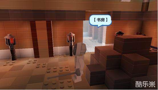 左边可以发现一个井口,走进会发现秘密通道可以进入到书房,在书房中可以发现墙上的“三黄”和一个传送蓝块。