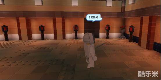 进入武器间会发现墙上的“四蓝”和一个传送蓝块还有在门口的宝箱里的钥匙
