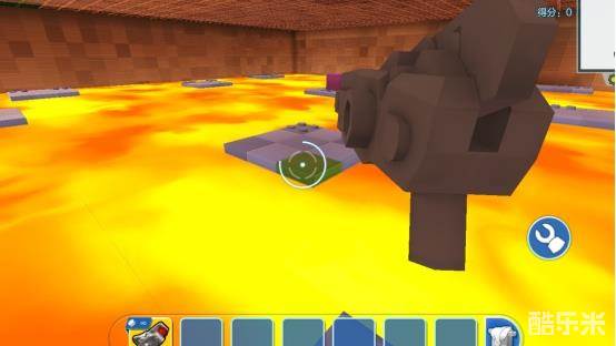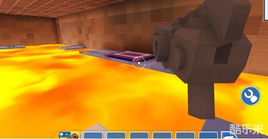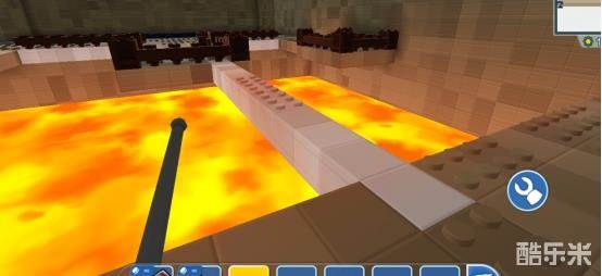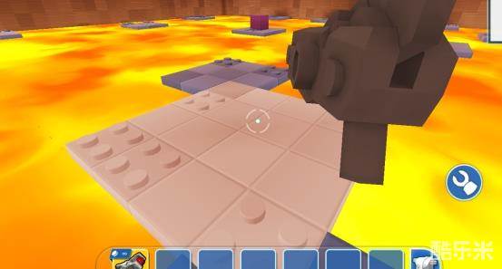 该关卡需要通过利用手中的搭路弓创建一条可以前进的道路,搭路弓命中的方块会变成绿色,两个绿色点之间会形成一条道路,一直到紫色毛毯的地方即可通关。