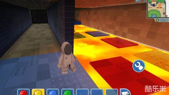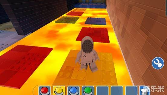 达到蓝色区域后则是需要使用相对应地面颜色的按钮前进即:红,黄,红,蓝,绿,红,黄,蓝